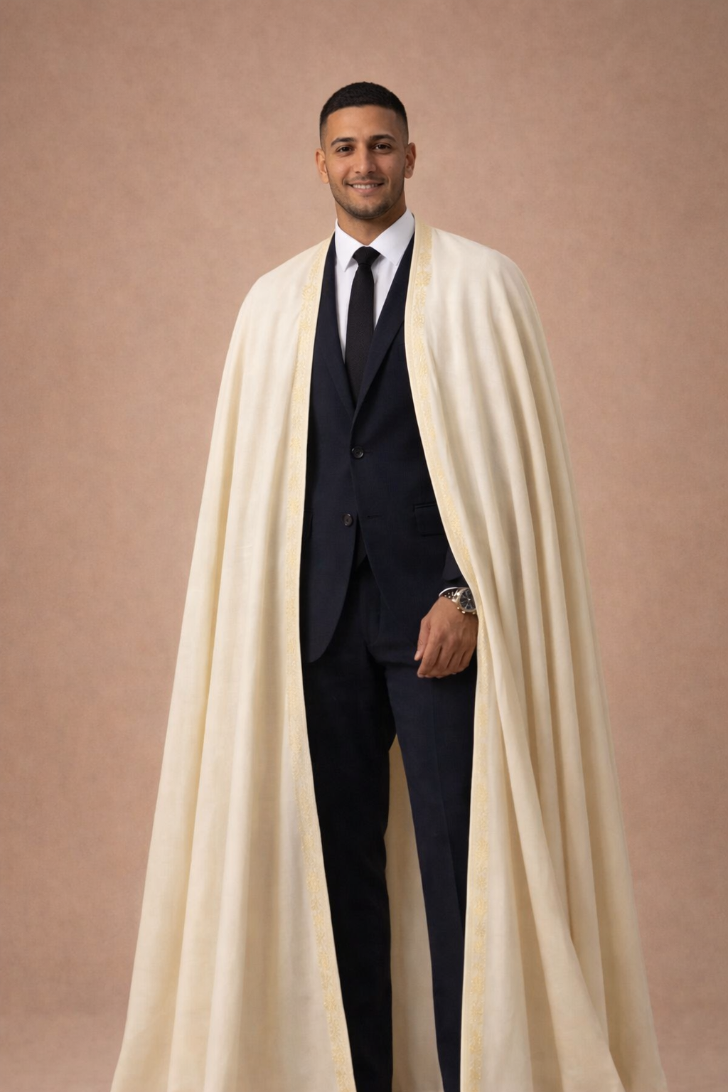 برنوس ملكي ابيض قماش سوسدي راقي ٫ برنوس كشميري مستوحى من الوبر الحر