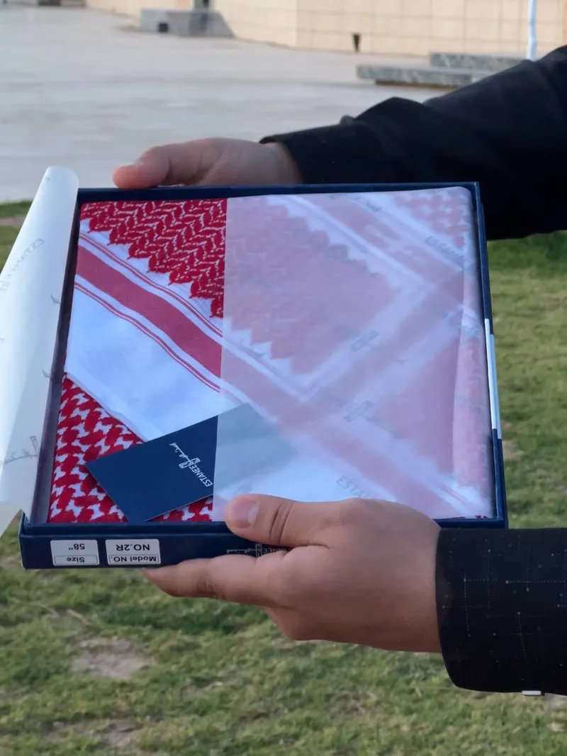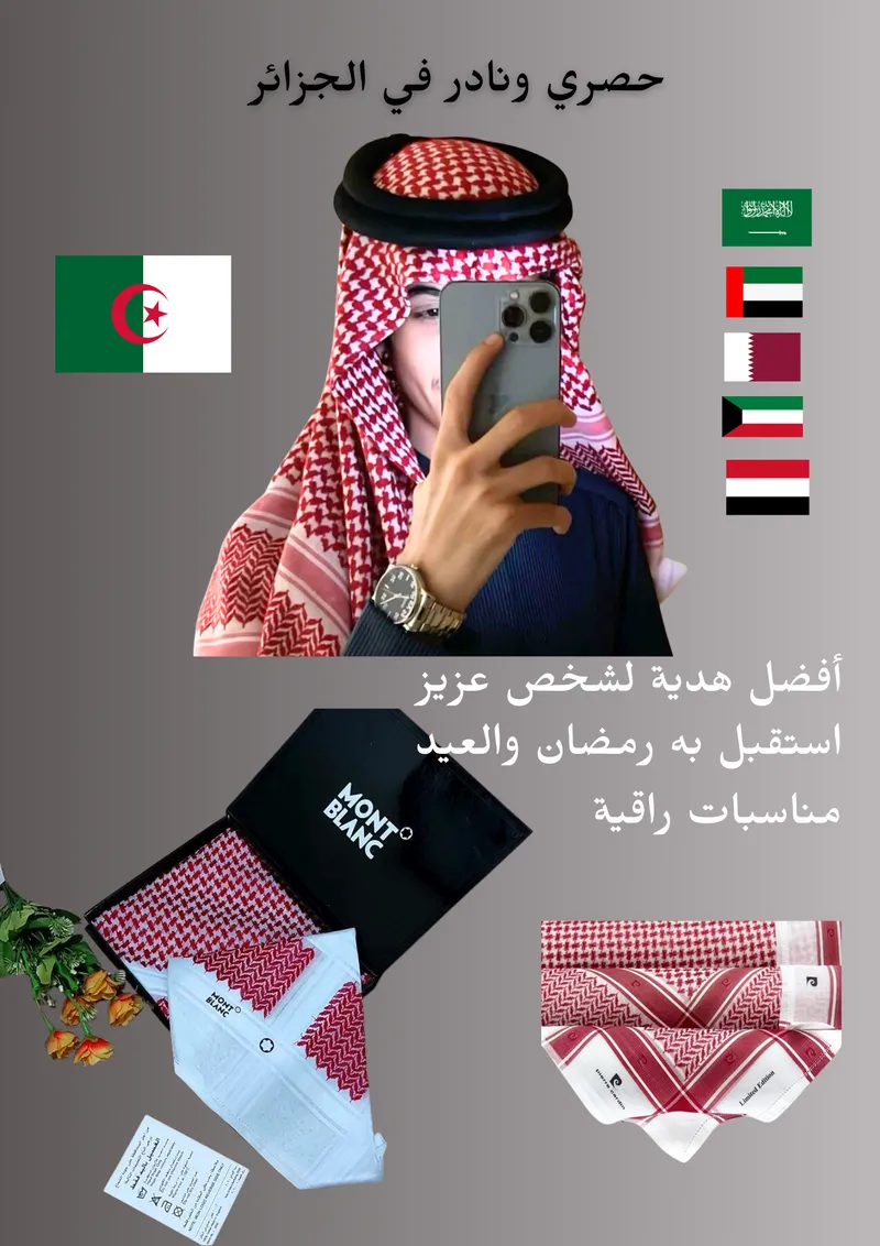 شماغ يأتي في عبوة فيه لونين الأحمر دم الغزال و الأبيض ، العقال يأتي مع الشماغ فخامة و أصالة بأفضل الأسعار مع هدية خاصة برمضان و العيد